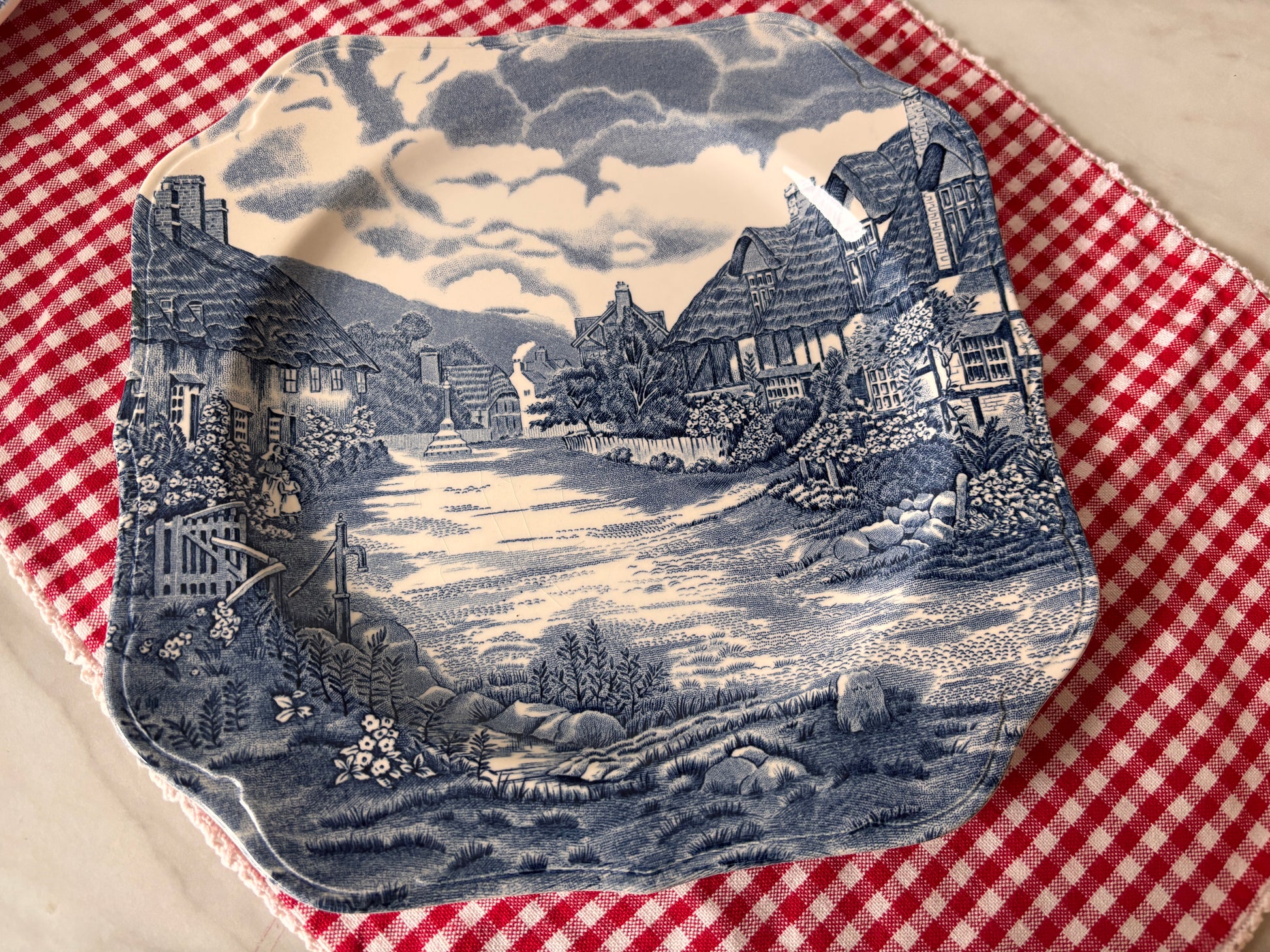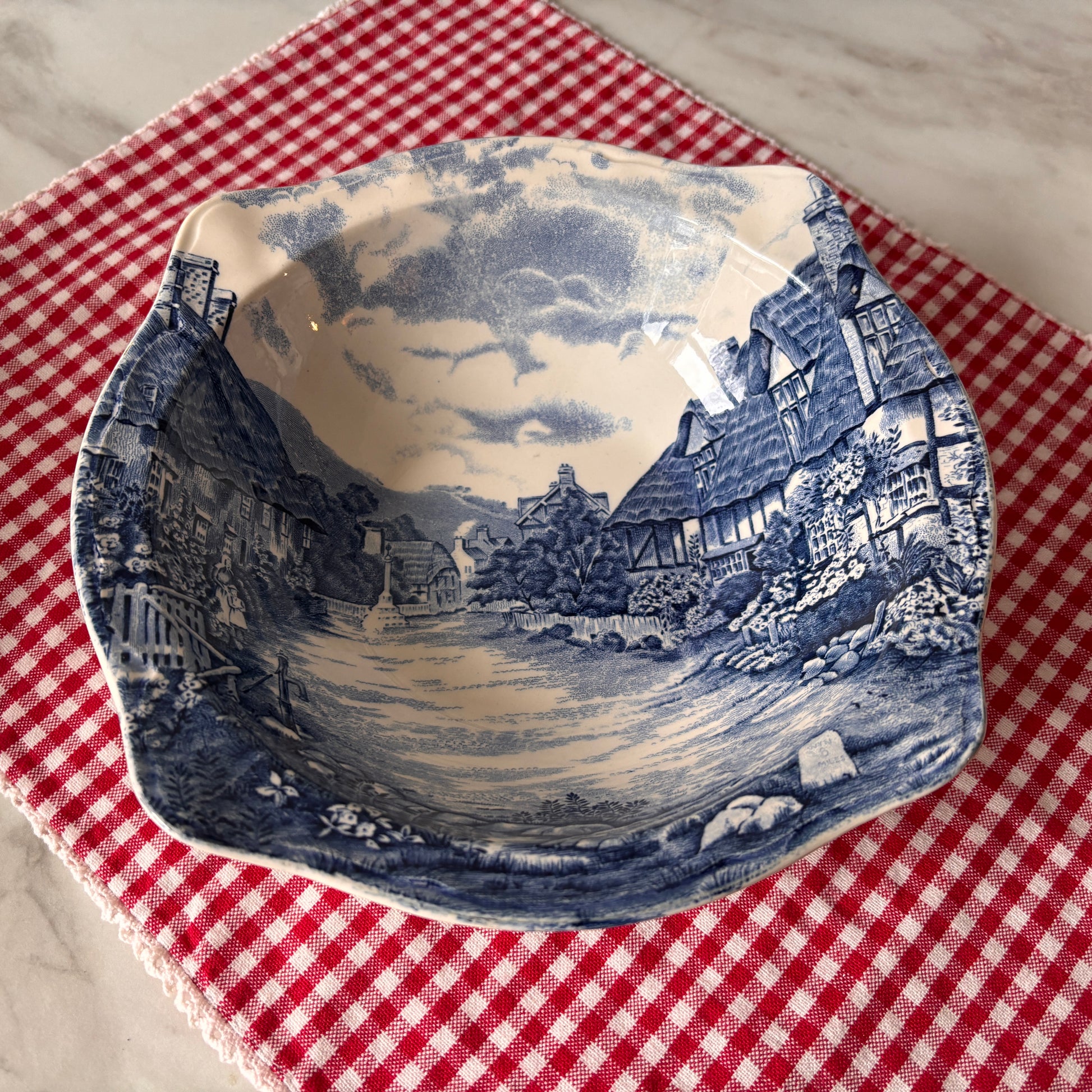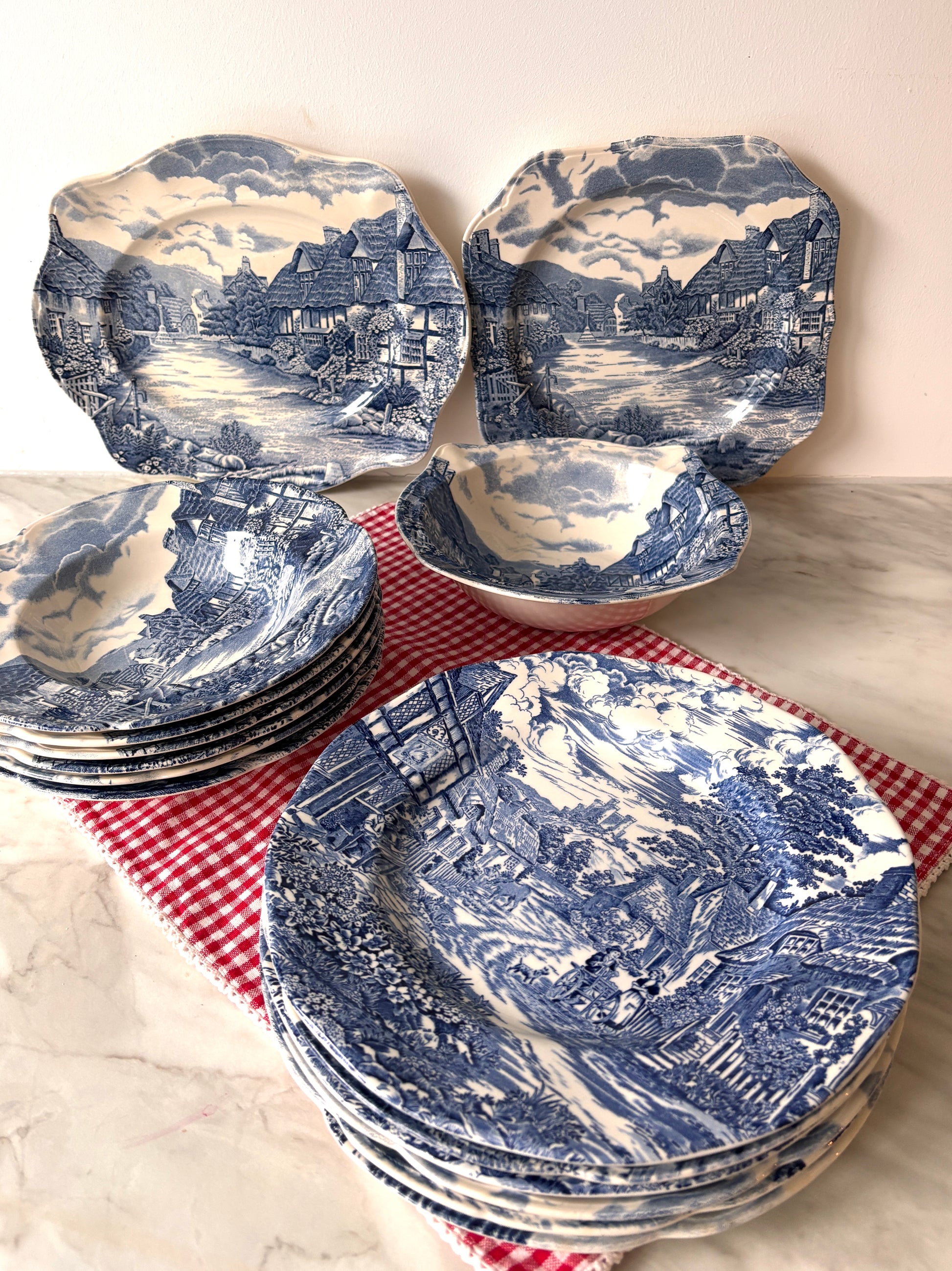 Vintage middagsservise til seks fra Johnson Bros, England. Merket under: Olde English countryside made in England by Johnson Bros.
