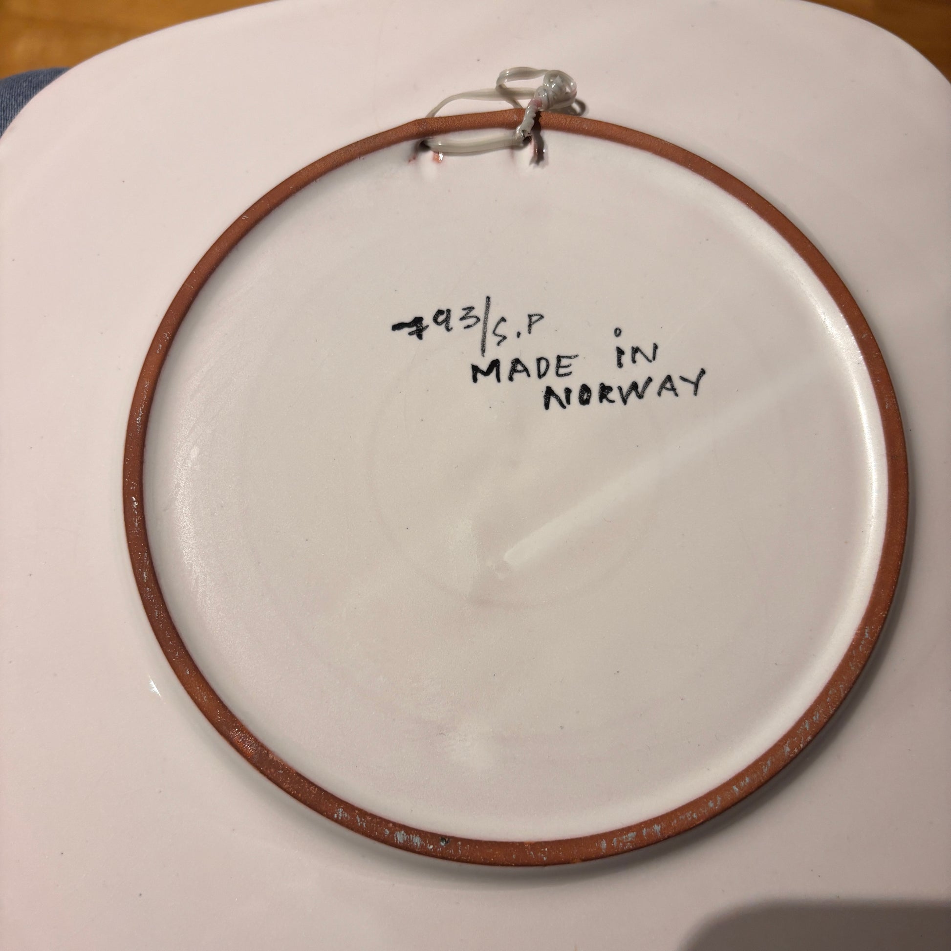 To fine vintage platter fra Graveren keramikk. Fra slutten av 50-tallet. Selges enkeltvis kr 299,- pr stk. Disse har oppheng på baksiden, men kan også fint brukes som ostefat. Signert S.P. Made in Norway.